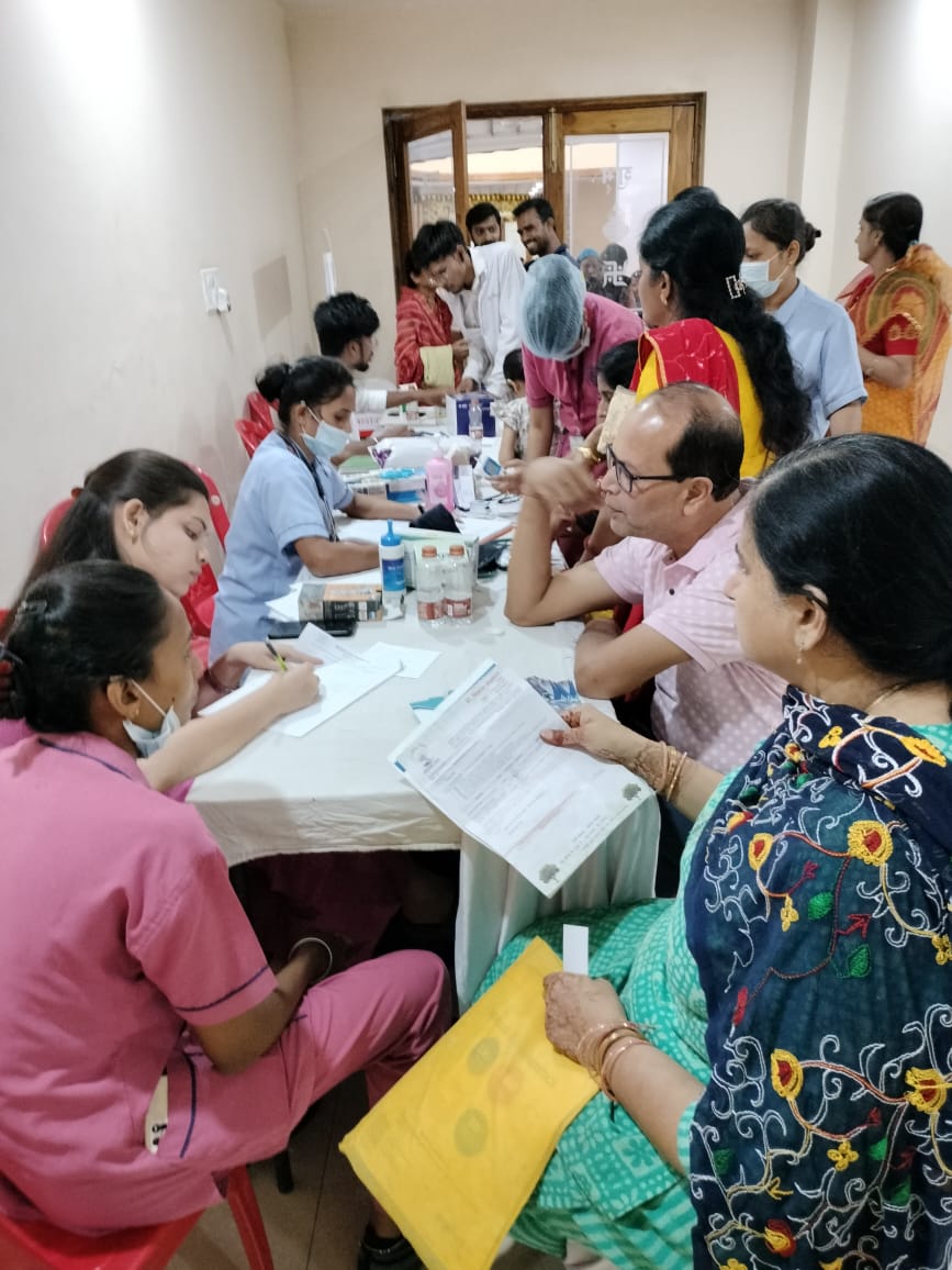 इस फ्री मेडिकल कैंप में हेरिटेज हॉस्पिटल तथा शाश्वत अस्पताल के चिकित्सको ने आये हुए मरीजों का निशुल्क चेकअप किया।