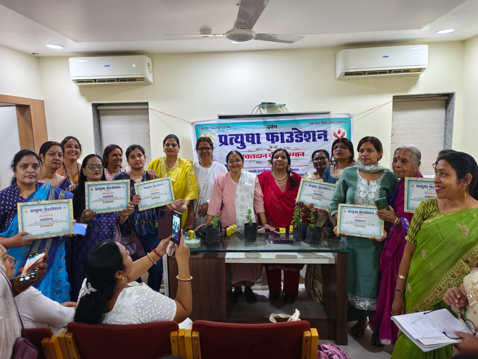 प्रत्युषा फाउंडेशन रायपुर छत्तीसगढ़ द्वारा सर्व ट्रॉम हॉस्पिटल तात्यापारा में अंतराष्ट्रीय महिला दिवस के अवसर पर प्रदेश में रक्तदान करने वाली महिला शक्तियों को रक्तदान वीरा सम्मान का आयोजन किया गया संस्था अध्यक्ष प्रीति दास मिश्रा ने बताया कि प्रदेश के अलग अलग शहरों में अलग अलग ब्लड ग्रुप के महिलाओं द्वारा थालेसिमिया और सिक्लसेल के मरीजों के लिए रक्तदान किया पतंजलि योग महिला ग्रुप रायपुर श्री बालाजी योगा ग्रुप श्री नगर वयं फाउंडेशन उन्हें संस्था द्वारा पौधा बैग और स्मृति चिन्ह दे कर सम्मानित किया गया कार्यक्रम के मुख्य अतिथि डॉ सुरेन्द्र शुक्ला अस्थि रोग विशेषज्ञ सक्षम प्रांत प्रमुख ,विशेष अतिथि श्रीमती इंदिरा जैन प्रांत महिला प्रमुख सक्षम अतिथि रामजी रजवाड़े प्रांत प्रचारक सक्षम ,डॉ प्रीति उपाध्याय गाइडेंस एंड काउंसलर जी पुष्पा समाजसेविका ,श्रीमती अनीता वर्मा समाज सेविका ,डॉ प्रीति रानी तिवारी शिक्षिका सर्व प्रथम कार्यक्रम की शुरुआत माता सरस्वती के फोटोफ्रेम में माल्यार्पण दीप प्रज्वलित कर मंत्र उच्चारण और शंखनाद अतिथियों द्वारा कार्यक्रम की विधिवत शुरुआत की तत् पश्चात लक्ष्मी जिलहारे सुगंधा जैन,के जय ,अनीता गजबिहे ,जे नारायण जी अम्मा ,अनीता संधी, मुनी व्यास ,डॉ कविता साहू ,मंजूषा संत ,प्रभा येड़े, पी उषारानी,चिन्मय कुमारी पंडा,चित्र सोनी ,पूजा कुमारी अदिति रत्नानी ,वैशाली पुरोहित ,सुमन यादव ,अदिति पटेल प्रतिभा त्रिपाठी ,राधे जिलहारे आयुष मिश्रा , आई एस श्री आयुषा ,श्री लक्ष्मी ,के शांत अर्चना बोरा कविता साहू , वैशाली पुरोहित 30 शोभा शर्मा 28 बार अनीता गजबिहे 20 बार नीलिमा यादव 10 बार छत्तीसगढ़ के चारों संभाग के अलग अलग शहर और समाज की महिलाओं द्वारा से आज 27 यूनिट रक्तदान किया गया थालेसिमिया सिक्लसेल के मरीजों को उपहार स्वरूप भेट किया गया आशीर्वाद ब्लड सेंटर अंतरा गोवर्धन 82 बार 36 महिलाओं का सम्मान किया गया वासु सर जयदीप ब्लड बैंक से विवेक शानू संरक्षक गुणानिधि मिश्रा कार्यक्रम संयोजिका डॉ भवानी प्रधान सुमन पांडे मंच संचालिका शशि यादव आर पिंकी गुरु , जे लता ई उमा गुरु ,के मंजू, ,कमला गुरु , ए निवेदिता गुरु ,गुड़िया साहू डॉ कविता साहू ,माधुरी शुक्ला मंजू वर्मा , नन्दा दहीवाले,टीना सोनी किरण ,मंजू वर्मा साहू ,आशीर्वाद ब्लड सेंटर के पूरा स्टॉफ, सर्व ट्रॉम के पूरा स्टॉफ शामिल हुई